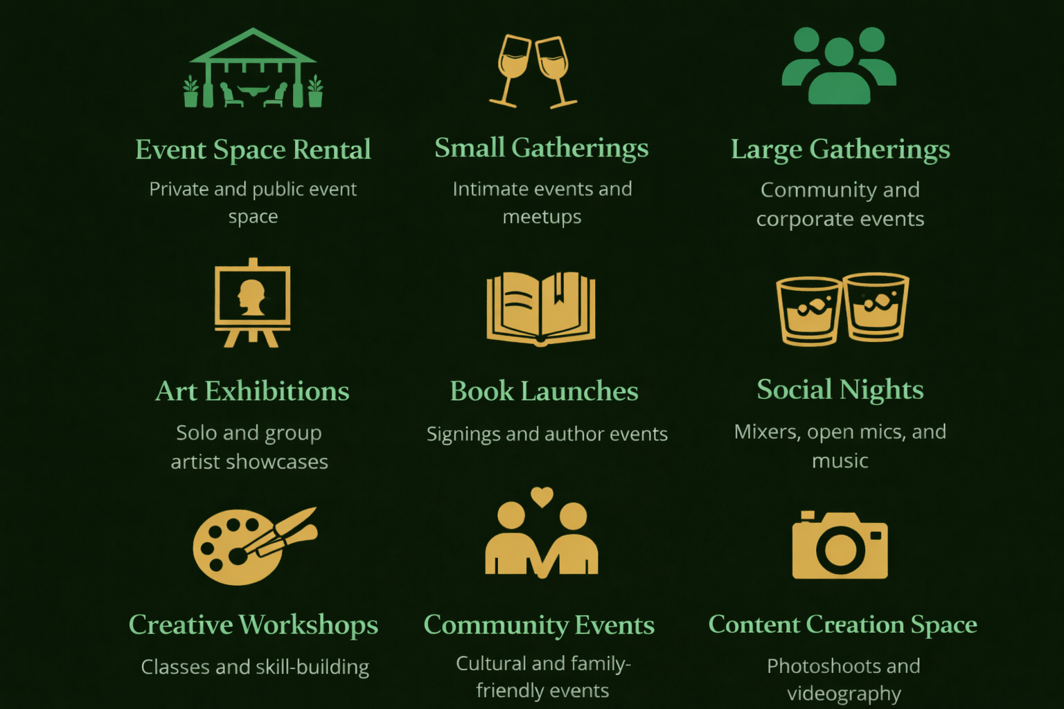 Whether you're hosting, creating, or gathering, we’re here to help you bring your vision to life in a space designed for connection and creativity.
